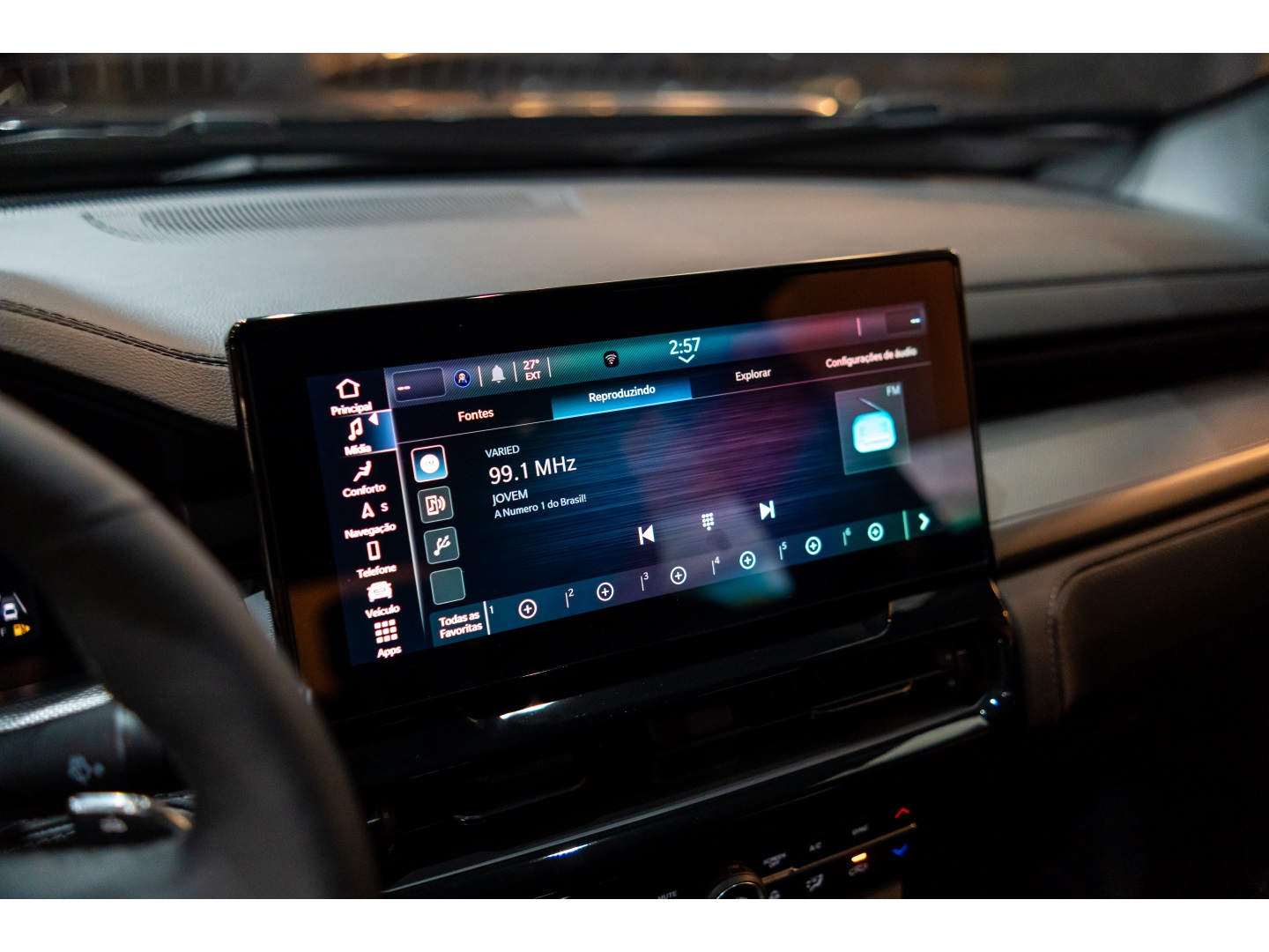 • Controle de som no volante